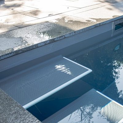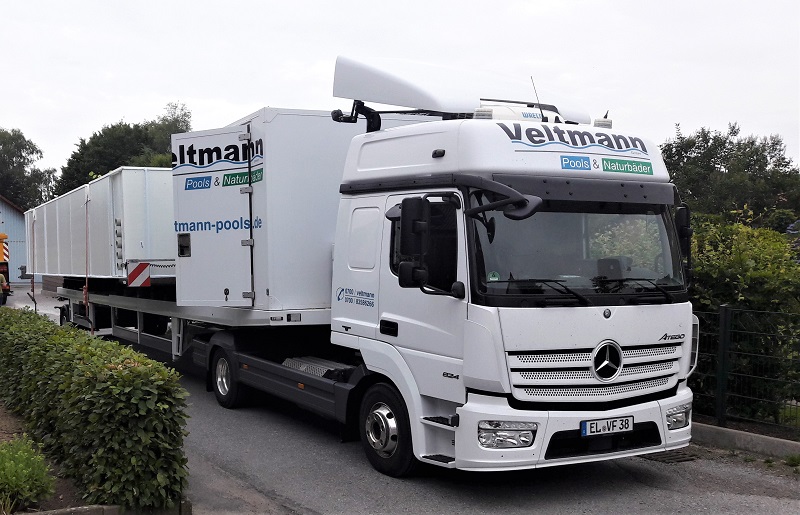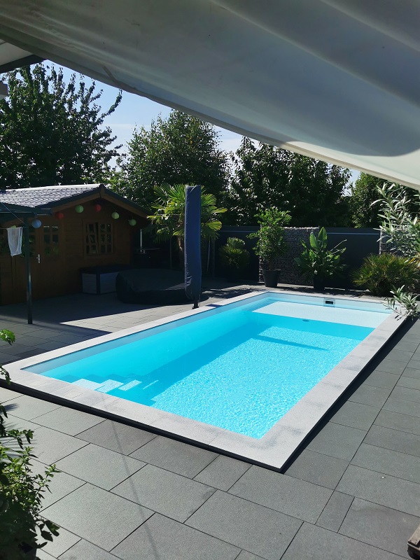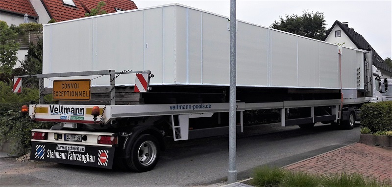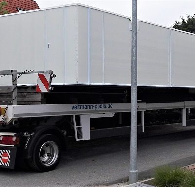 Wir können Ihnen Pools in vielen verschiedenen Größen anbieten, bis zu einer Breite von 5,30 m und einer Länge von 25 m – und das aus einem Stück. Alle Einbauteile – wie Scheinwerfer und Düsen – sind schon komplett vormontiert.
